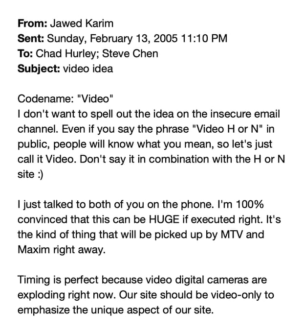 - The humble beginnings of YouTube: The first email with the idea to start YouTube, the first video, now it rakes in $31.5 billion a year!